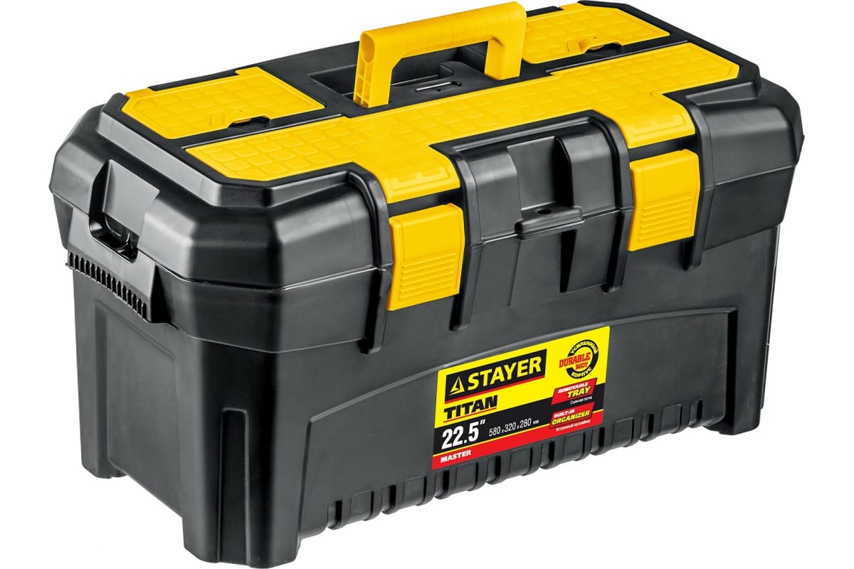 Корпус ящика для инструмента STAYER Titan-22 553 x 320 x 310 мм (22") 38016-22 изготовлен из пластика