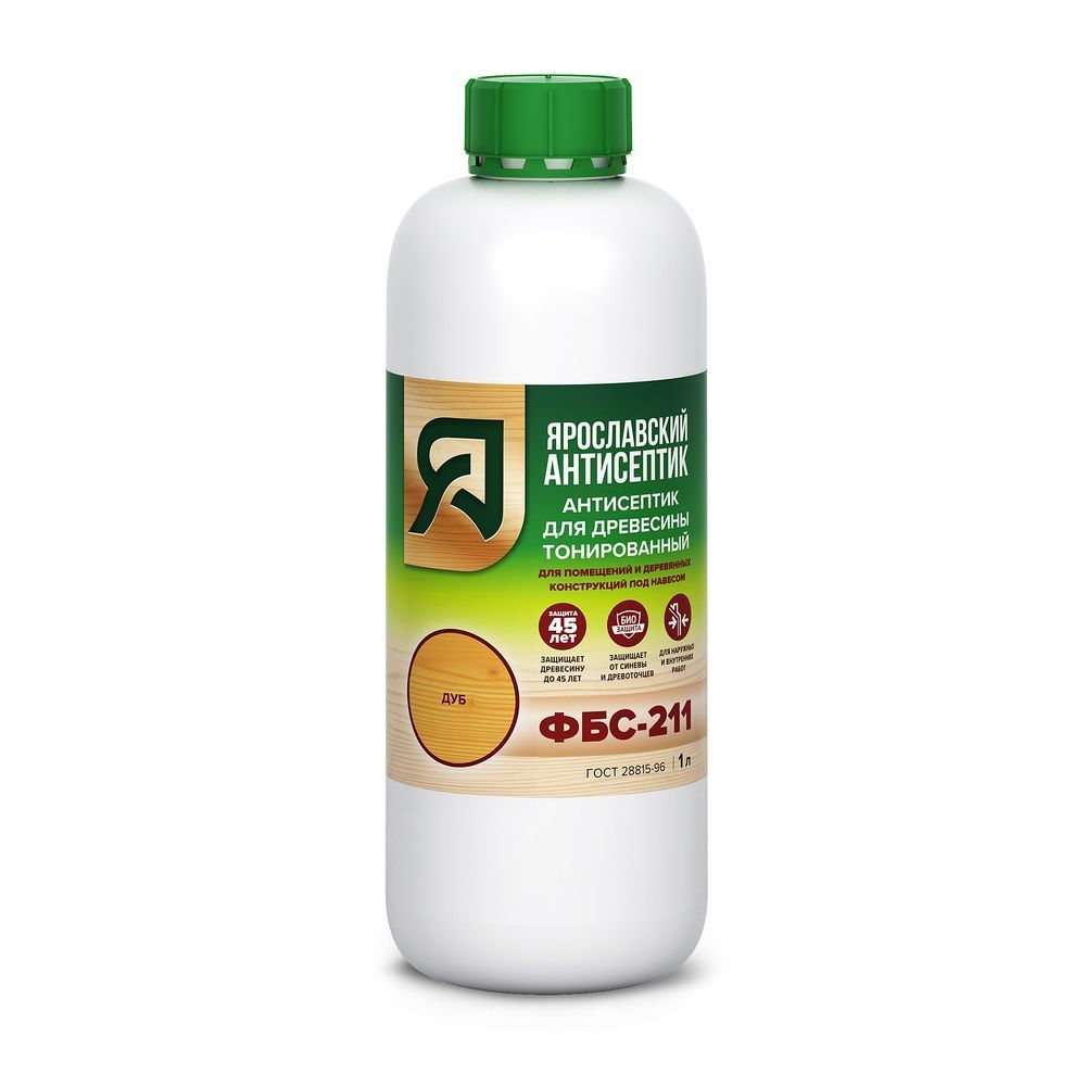 Антисептик ФБС-211 (бесцветный и тонированный) под торговой маркой «Ярославский антисептик» производится по ГОСТ 28815-96 «Растворы водные защитных средств для древесины» и предназначен для биологической защиты дерева от грибов (гниения, плесени, синевы) и насекомых-точильщиков при регулярном промерзании и конденсатном увлажнении в замкнутом пространстве. Тонированный состав также позволяет придать поверхности цвет благородных сортов древесины. ФБС-211 особенно эффективен против деревоокрашивающих грибов.
