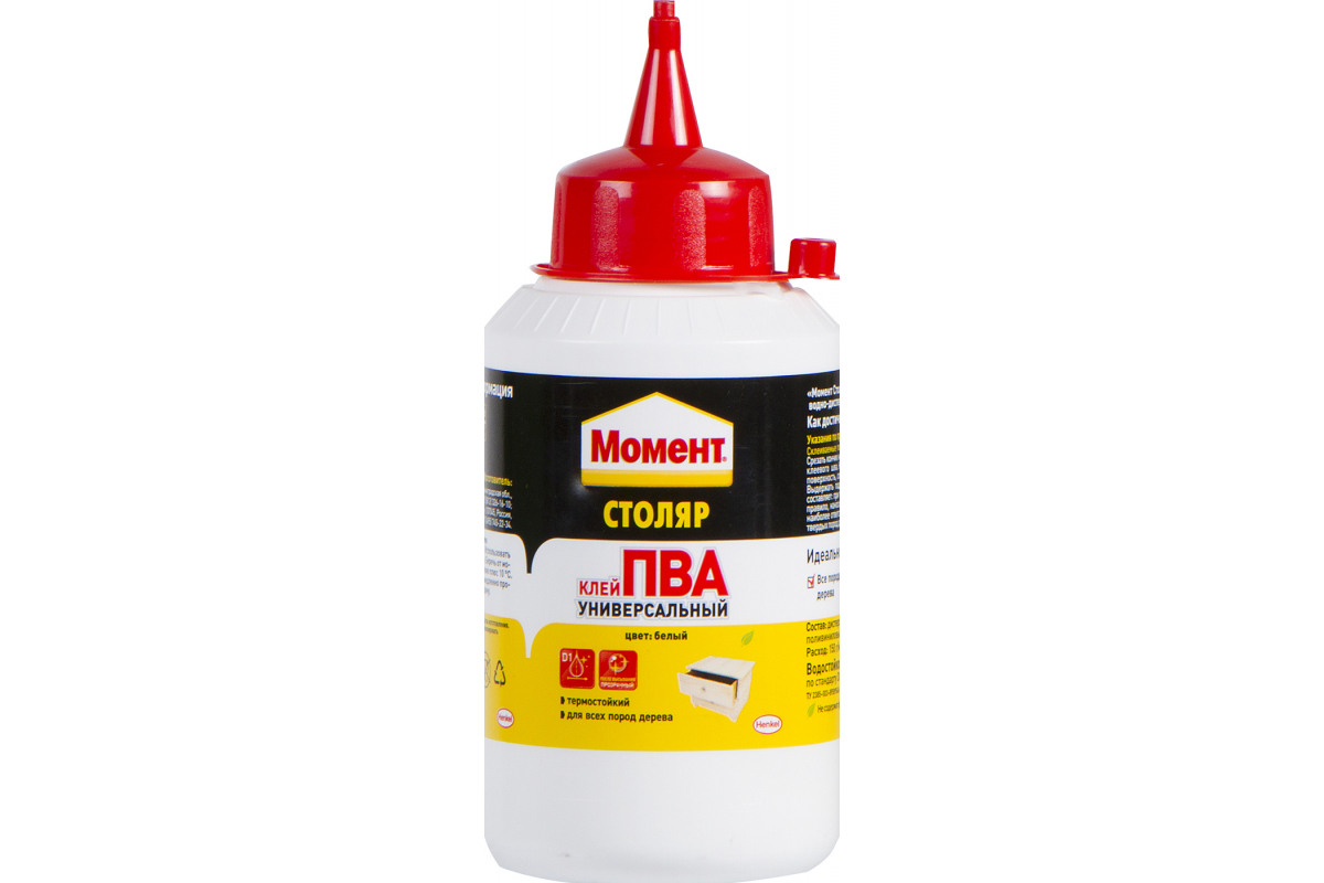 Предназначен для склеивания всех пород дерева, ДСП, ДВП, МДФ, многослойной фанеры, декоративного бумажно - слоистого пластика и шпона.