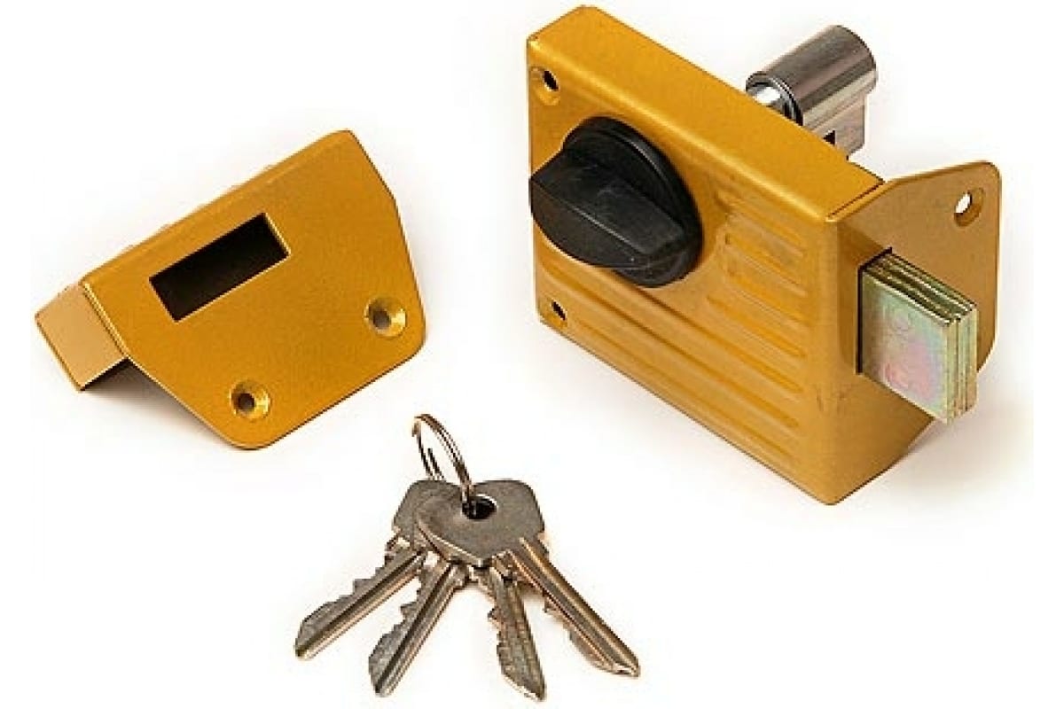 Способ запирания накладного замка ЗЕНИТ Зенит-ЗН-1-2.1 золото 09214 изнутри - ручкой;