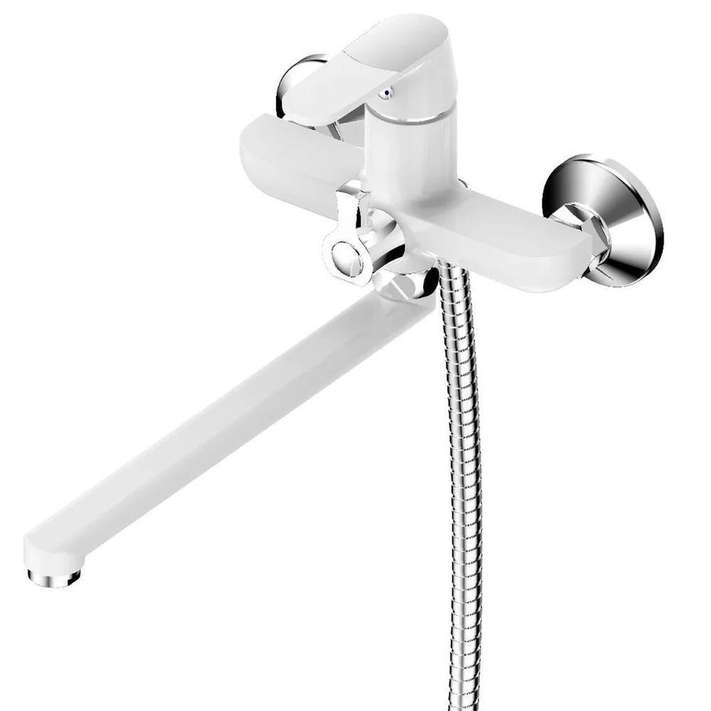 —Смеситель для ванны с душем РМС SL123W-006E однорычажный с длинным изливом белый